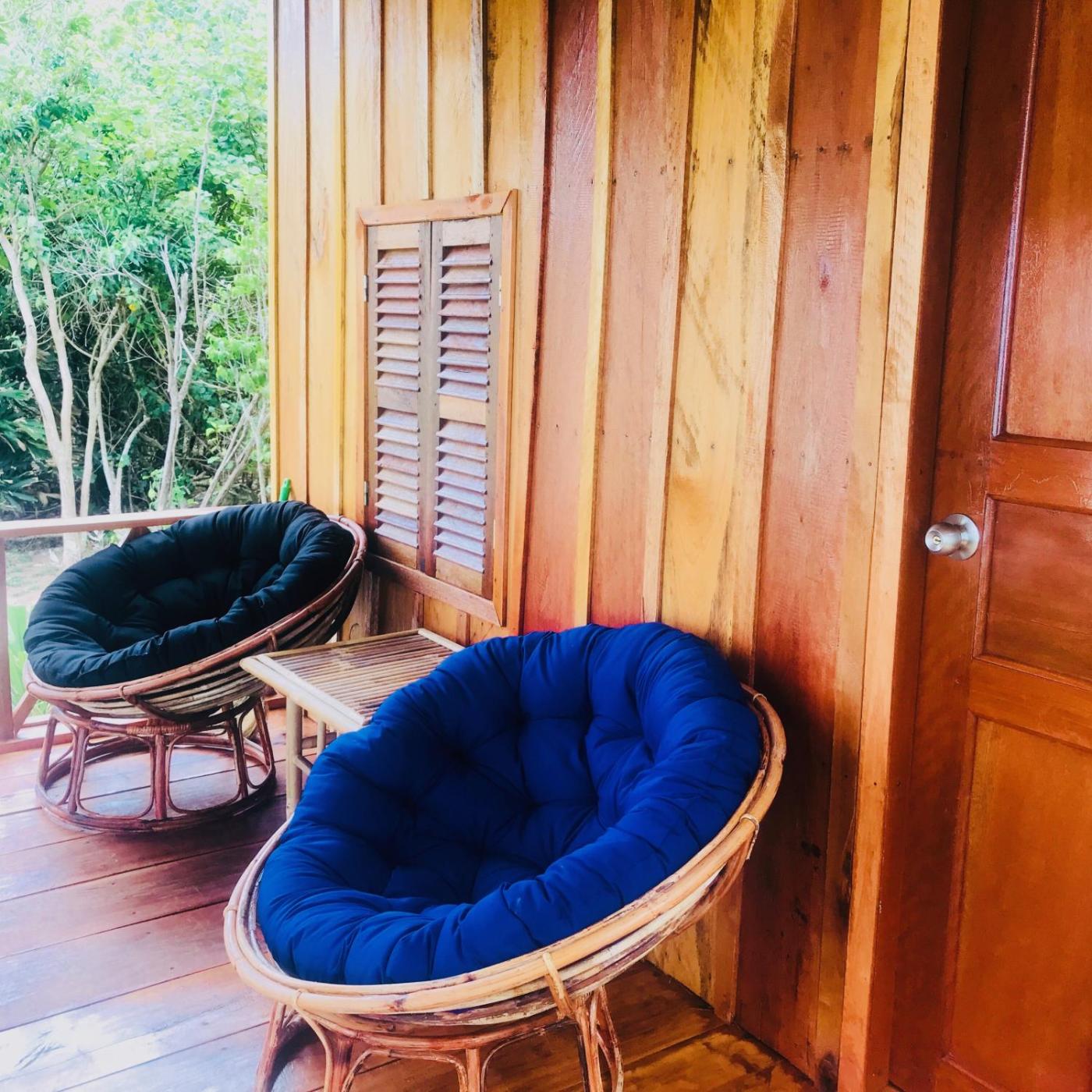 Cozy Bungalow. This bungalow features a private balcony fitted with two hammocks and a small table. The bungalow is equipped with solar-powered lightning. The en suite bathroom includes cold shower facilities. This bungalow can accommodate up to 3 adults with 1 single bed and a double bed. ;